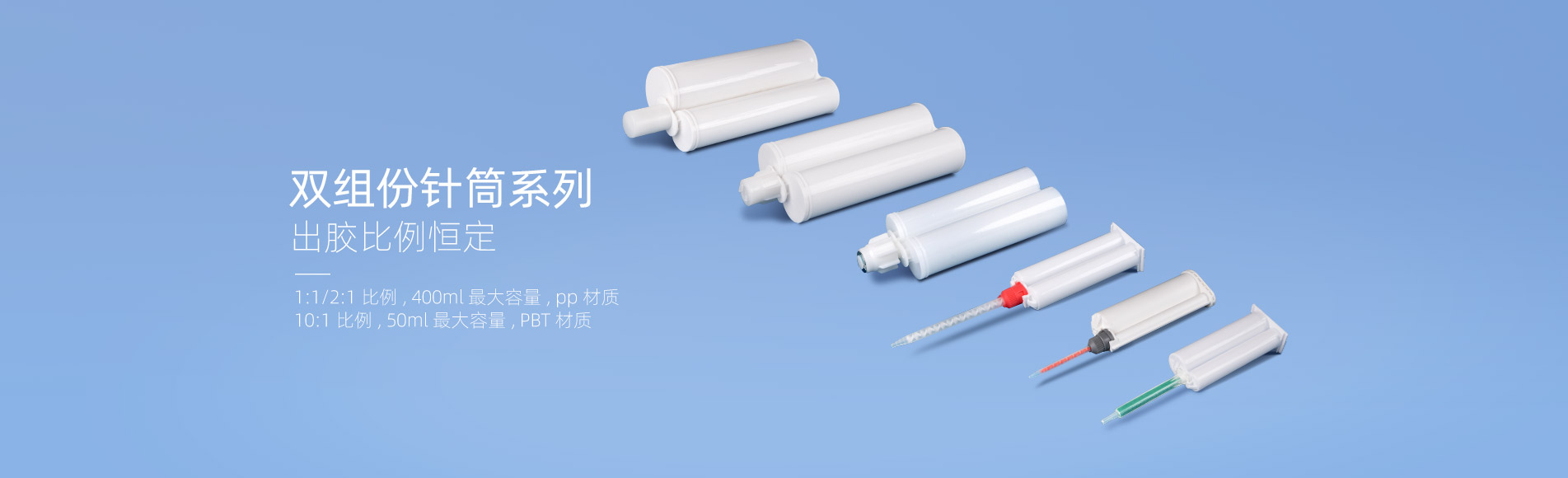 50ml10:1雙組份針筒采用PBT材料精制而成主要用來(lái)盛裝雙組份10:1的丙烯酸膠水。